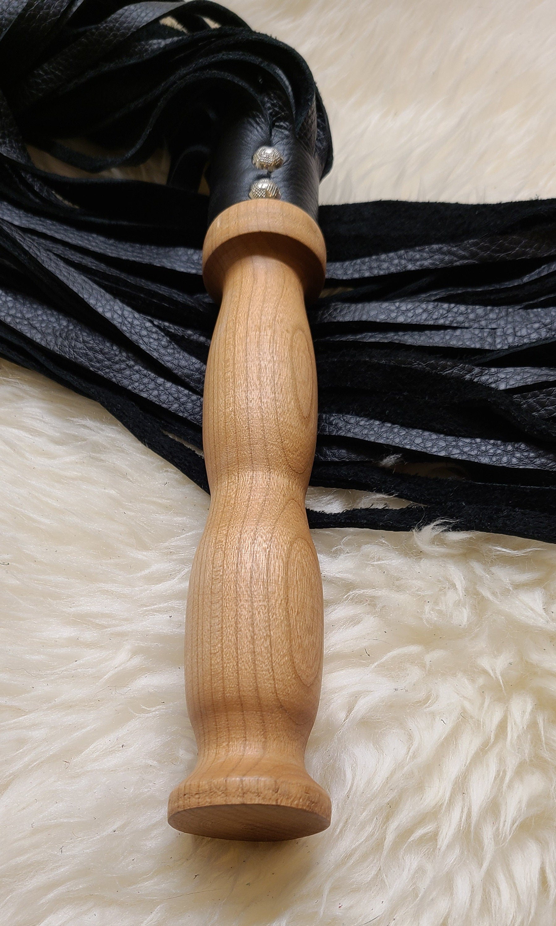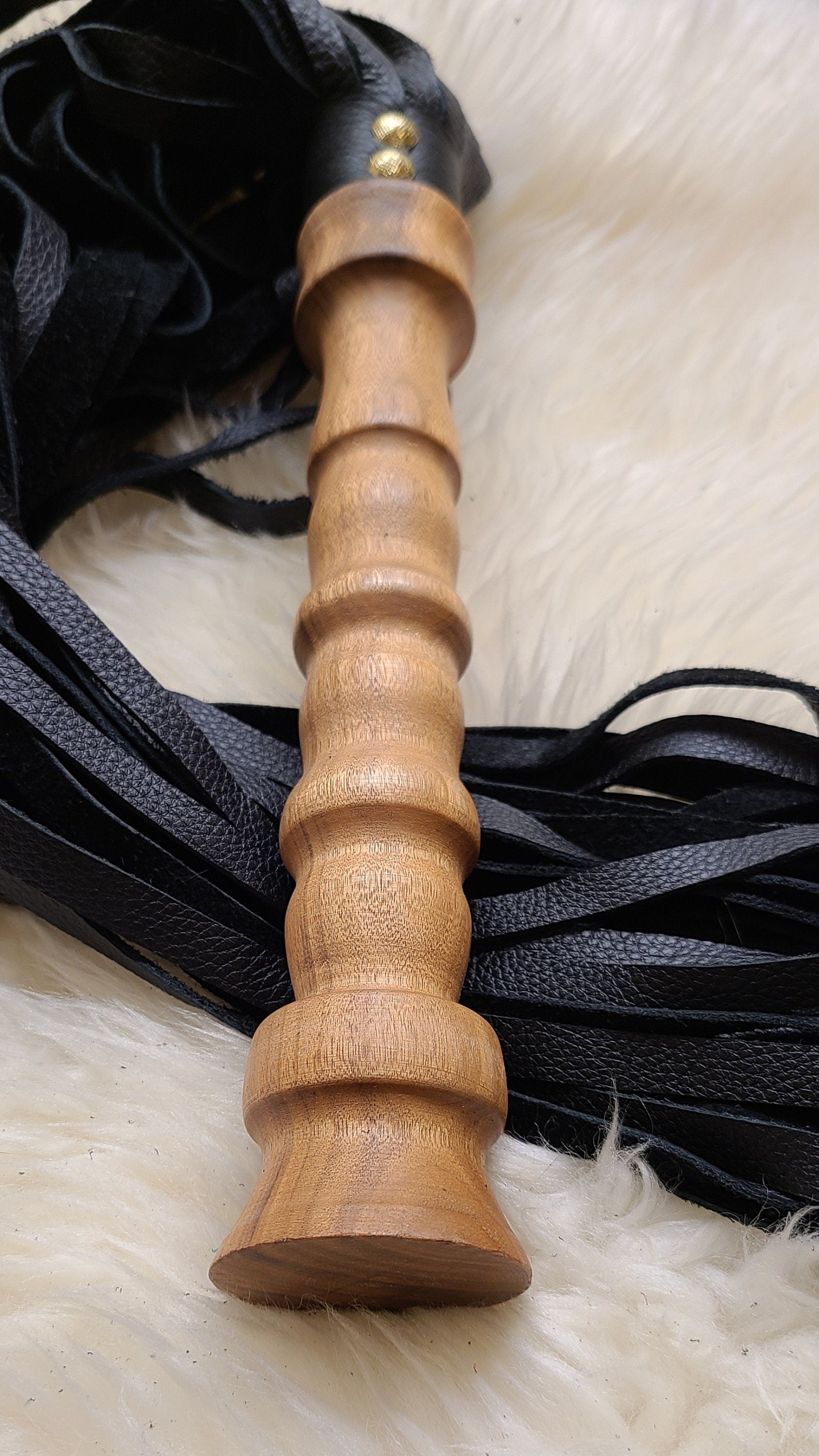 Premium leather floggers made with domestic and exotic wood handles. Also, don't forget to treat your wooden handle with our newest product, "Not Your Daddy's Sex Wax" to keep it in new, lasting condition.